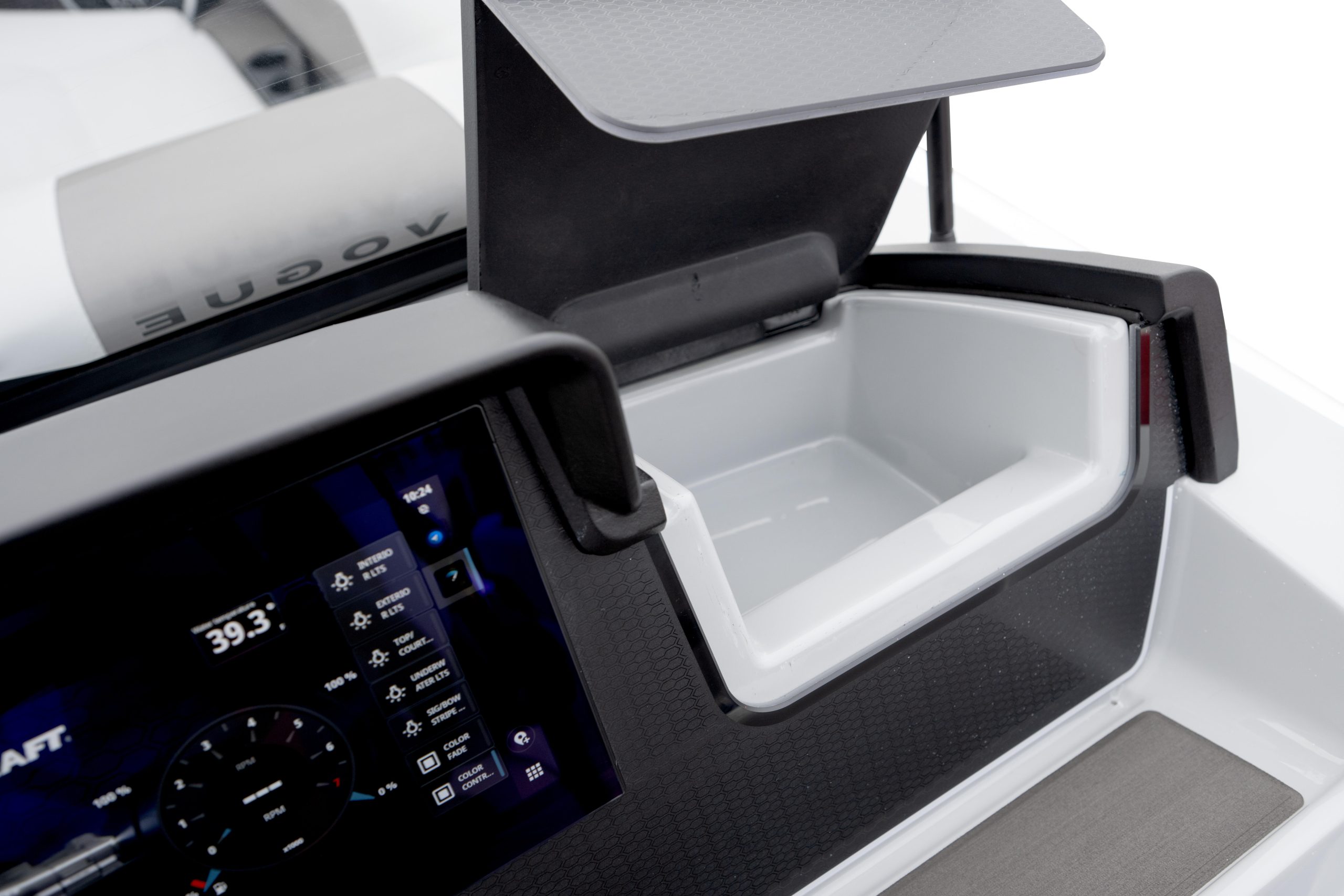 Propulsé par un Mercury® 150 XL, le Vogue 23 RL offre une navigation fluide, silencieuse et puissante, idéale autant pour les longues croisières que pour les sorties conviviales entre amis ou en famille. Chaque détail a été pensé pour maximiser le confort, la stabilité et le plaisir à bord.